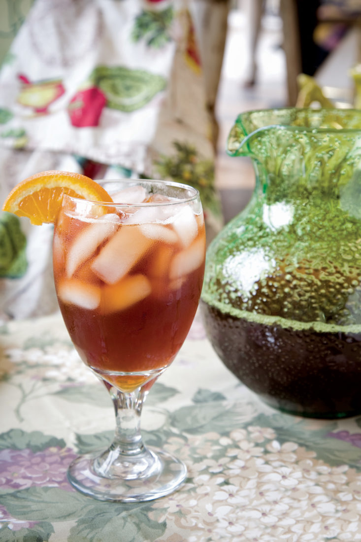 By the 1920s Americans were stocking their kitchens with specialized iced tea glasses, long spoons, and dainty lemon forks. In Southern Cooking, published in 1928, Henrietta Stanley Dull advises women to serve sweet tea with “a sprig of mint, a strawberry, a cherry, a slice of orange, or pineapple.” “Milk,” she writes, “is not used in iced tea.” (No word on Sweet’N Low.)