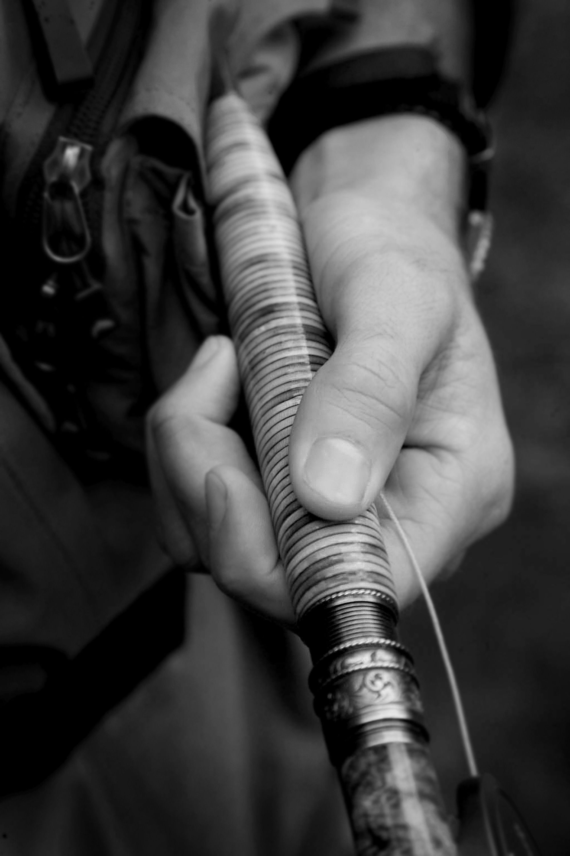 I asked to see the rod that Bill was carrying. It was an exquisite thing, seven-and-a-half feet long, in two pieces, built for a five- or six-weight line, heat-treated to a deep, dark brown, embellished with narrow wraps of translucent silk, its tip just a sixteenth of an inch wide, the overall design borrowed from a celebrated Michigan rod maker of the mid-century named Lyle Dickerson. It was clear that, like every other rod maker I’d met, Bill Oyster was a perfectionist; there’s no other way to do this. Making a fine bamboo fly rod takes forty, sixty, eighty hours of highly skilled work, and Bill spends an additional week peering into a microscope to add the complex engraving on all his nickel silver fittings. “It’s hard to think artistically when you’re just trying to eat, keep the power on,” he said. “So yeah, maybe I’m obsessive-compulsive. Not with other things — I mean, it’s not as if I get up, make the bed, tuck my shirt in. But with this, every rod I make I want to make it better. I throw away ninety percent of the bamboo I buy, burn it in the backyard. If there’s a blemish in it, it drives me nuts.”