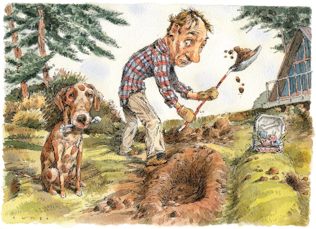 A week before Labor Day in 2010, I had to put our dog Marty—nineteen years old—down. I buried him in the backyard next to Ann, Hershey, River, Inklet, Nutmeg, Joan, and a stray we’d been trying to coax over for a month that some overzealous DNR agent shot in the tree farm. Nineteen! One time when I wasn’t paying attention, Marty—part bulldog, mostly underbite—had stuck his head in my plastic cup and drank about sixteen ounces of a bourbon and Coke. He wobbled around, peed on himself, and then wouldn’t come near booze for the rest of his life. I buried him deep, and placed some chicken wire and a cement block on the grave.