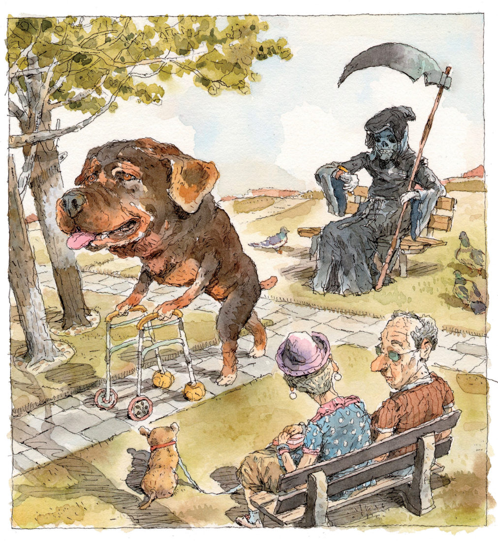 What kind of day was it? The morning began with an oncologist. She laid out our next year—my wife’s cancer would require radiation, then chemo, then an operation, then more chemo. Meanwhile, my dog, Jesse, was run over by a car. It was that kind of day. I was sitting in an uncomfortable chair in a bland office, struggling to comprehend large, ugly words, when my phone hummed in my pocket. I slyly checked and saw that it was my friend Tom, who was painting my house. I clicked ignore and tuned back in. Right, my wife had cancer. And this was the talk —the big talk—where the doctor tells you how it’s going to be. So many words—adenocarcinoma, endoscopic, lymphatic—words that held little meaning for me, just tiny sonic pricks of dread.